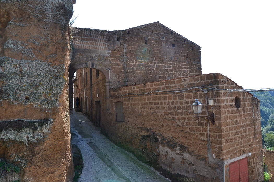 Qui si possono vedere tutte le costruzioni medioevali in tufo dal caratteristico colore giallo e si riconosce l’antico tracciato che passa per una serie di costruzioni scavate nel tufo.