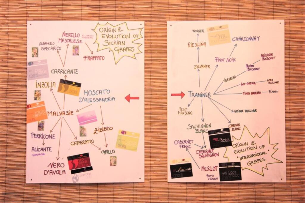 Infine quelli scelti da lei: Grillo, Catarratto, Perricone, Catanese, Alicante, Nero d’Avola, Frappato.