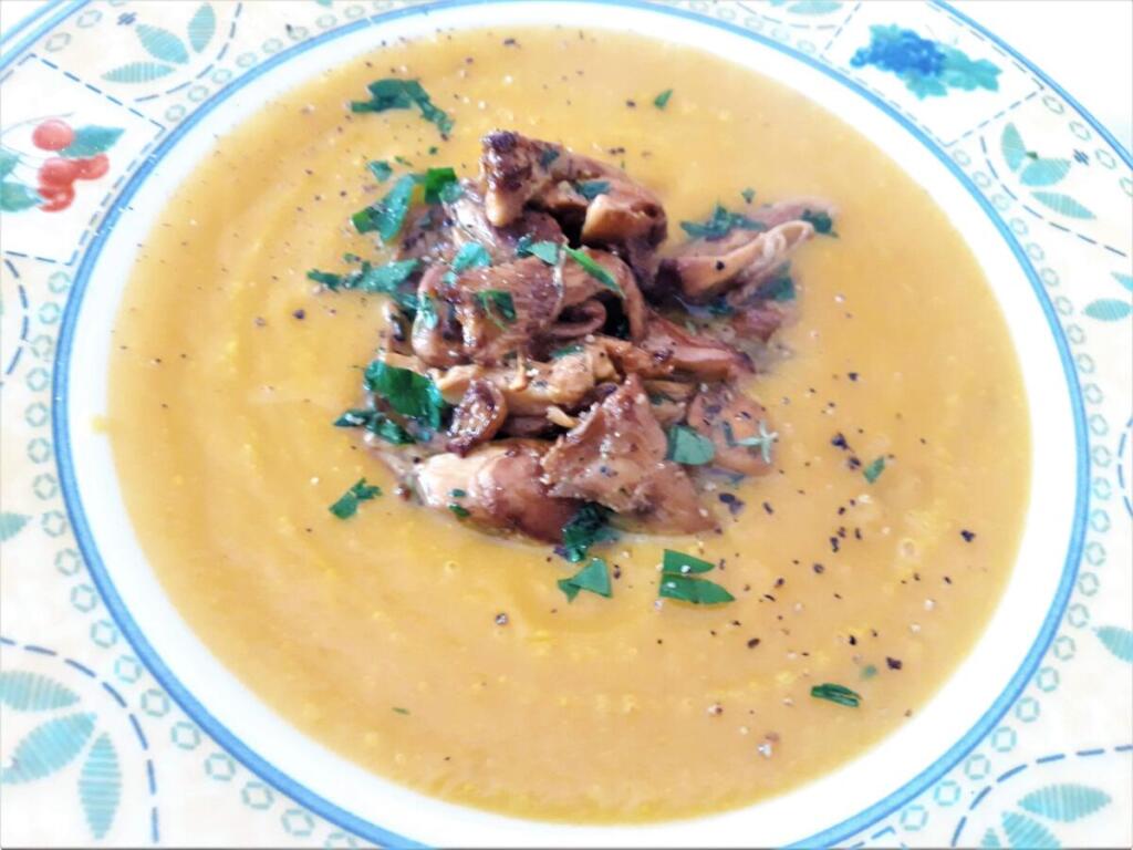 Una zuppa preparata con 9 erbe spontanee diverse, le castagne, i funghi porcini e il grano antico.