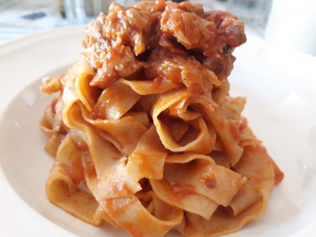 “Paccheri al ragù di rombo e carciofi un piatto che abbraccia i due mari, una Tirreno-Adriatico culinaria”.