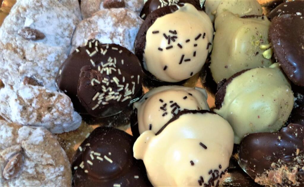La cotognata realizzata nelle sue formine di terracotta, con le mele cotogne tipiche del periodo, Nzuddi a base di mandorle, le Ossa de motti o Mustazzoli, molto croccanti, bicolore aromatizzati con i chiodi di garofano, le Rame di Napoli al cioccolato.
