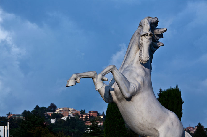 Lungo le vie della cittadina si snoda un vero e proprio percorso artistico: alle porte ci dà il benvenuto il sontuoso Cavallo Bianco, poi la fontana del “Trionfo del Bene” e la Fontana del “Narciso” preparano la strada alle stazioni bronzee della via crucis per le vie del centro storico.[/caption]
